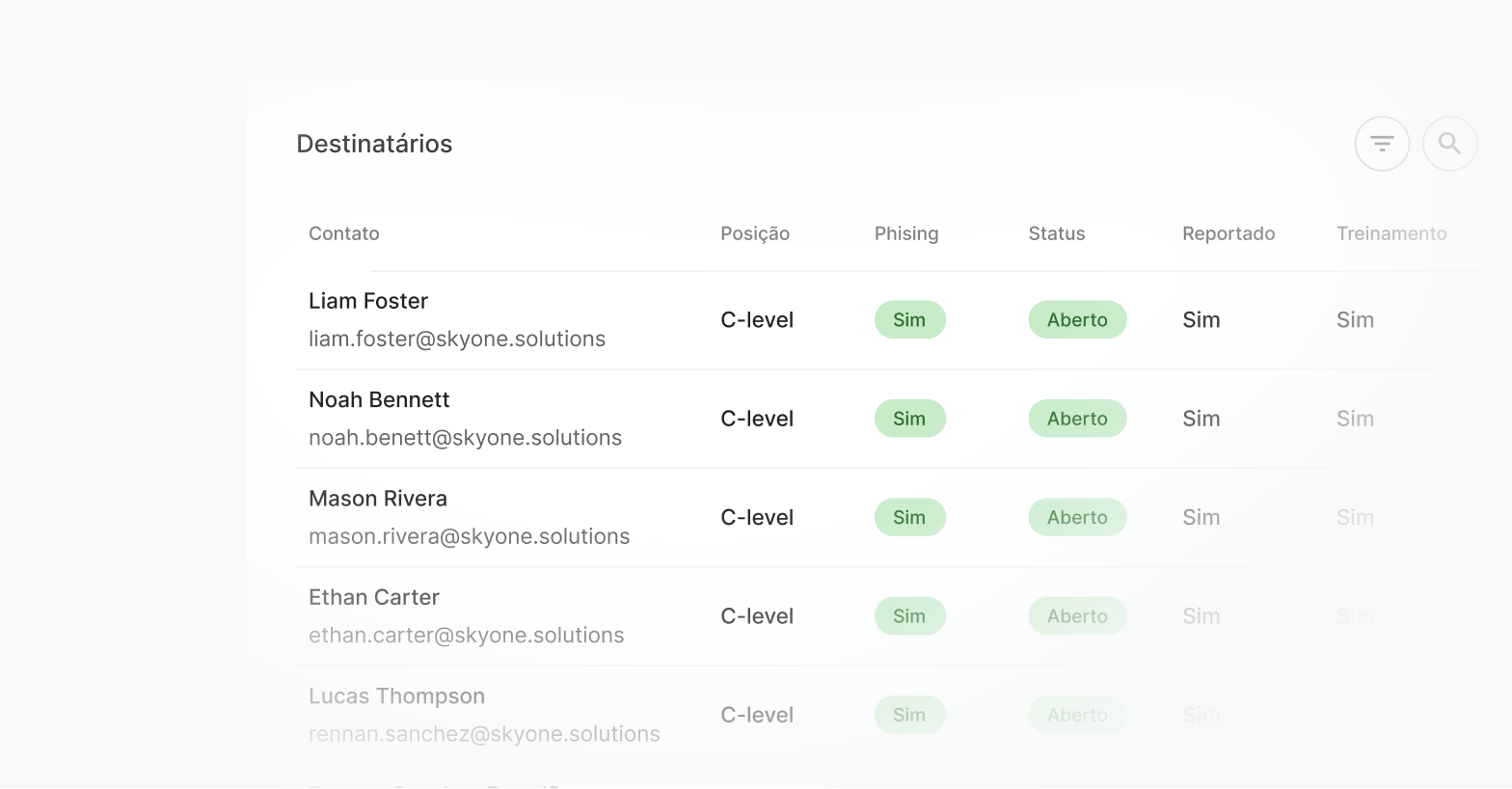 Visibilidade completa sobre como o nível de risco da sua equipe diminui conforme as campanhas e treinamentos avançam.