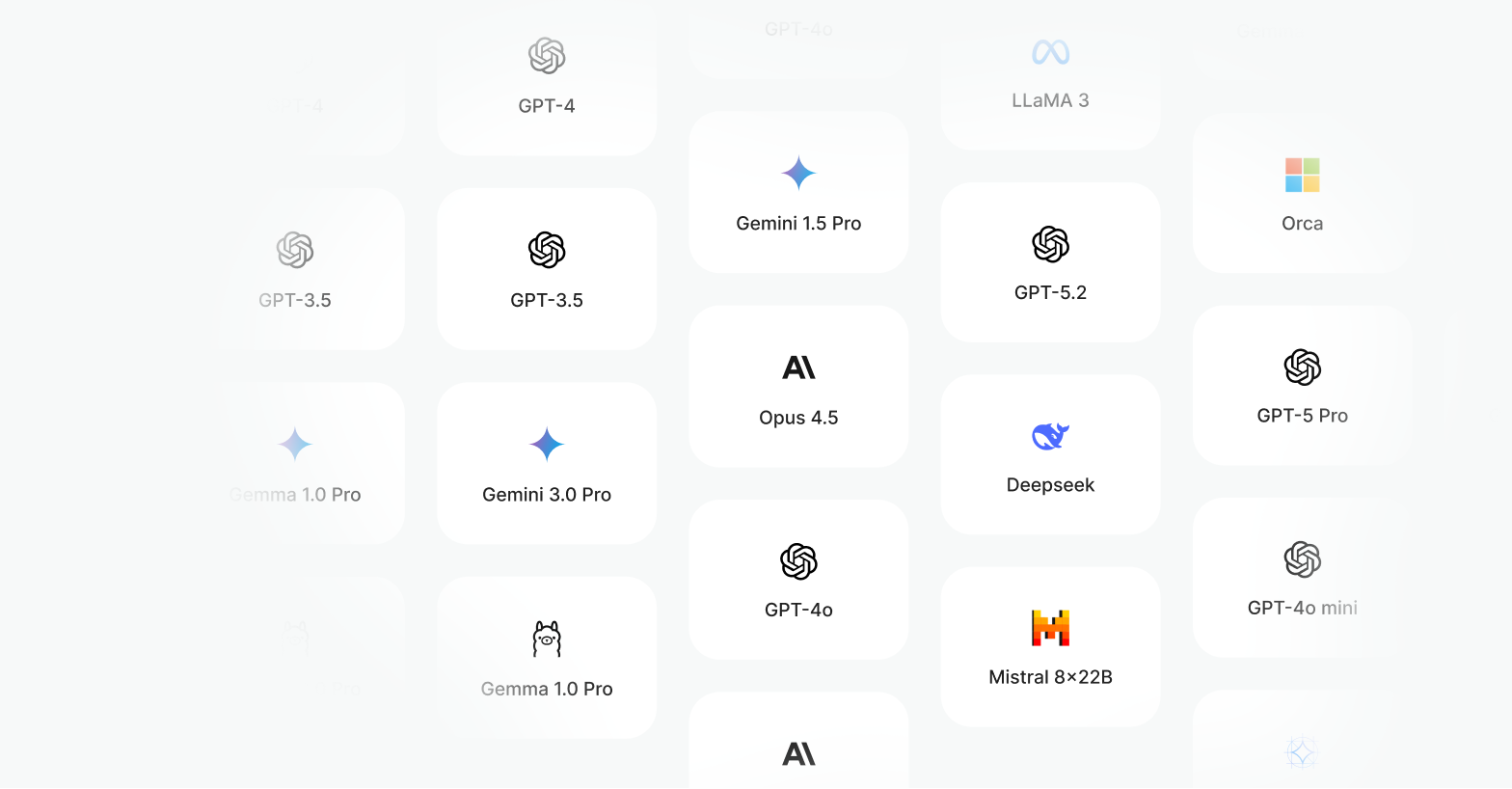 Compatibilidade com os principais Large Language Models e Large Multimodal Models do mercado, permitindo que você execute o modelo ideal para cada necessidade de negócio.